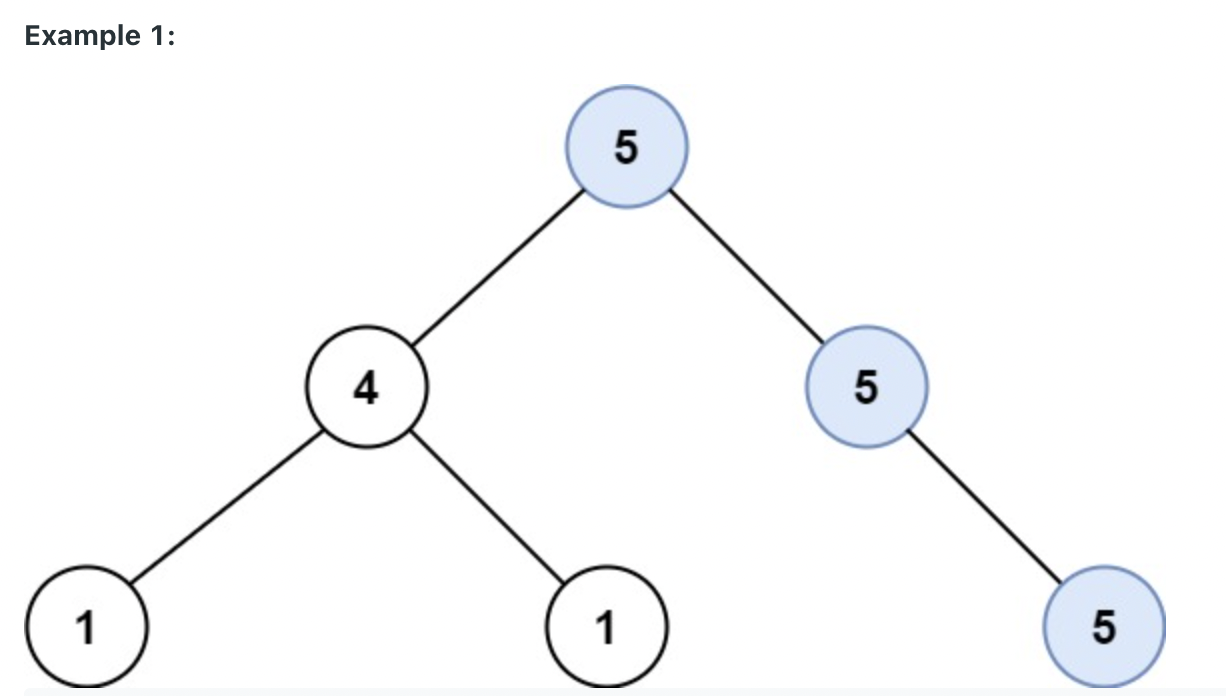 Input: root = [5,4,5,1,1,5]