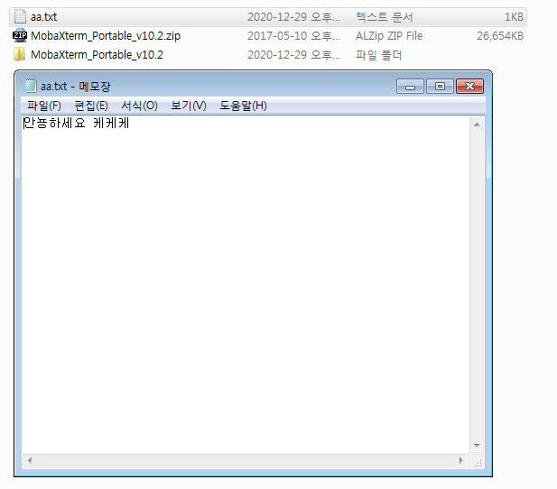 👉 aa.txt 파일을 접속한 곳에 넣어보겠습니다.