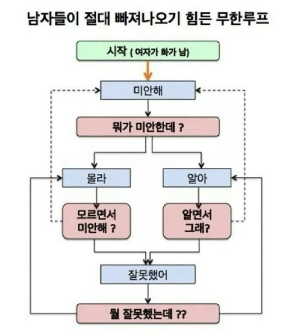 예를들어, 컴퓨터가 이런식으로 무한 루프에 빠지게 되면 이 알고리즘도 컴퓨터가 정확하게 처리하지 못하는 거죠.( 빠져나오려면 어떤 요구사항을 충족시켜 주어야 할까요? )