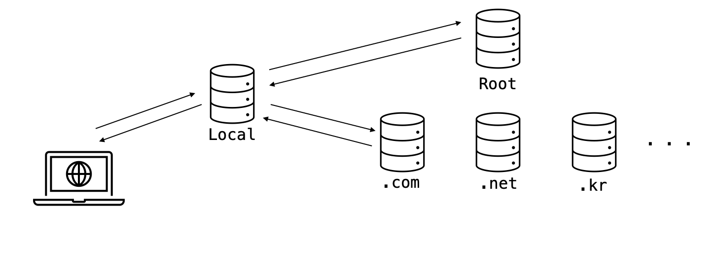 그러면 브라우저는 PC에 설정된 Local DNS 서버에게 해당 도메인과 IP를 가지고 있는지 물어본다.
