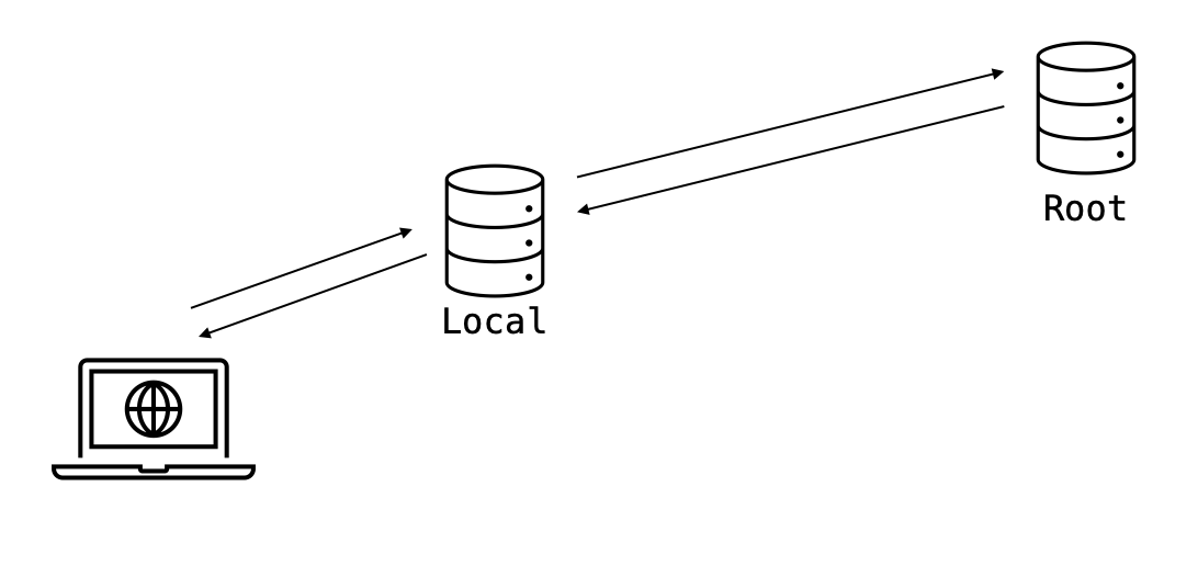 하지만 없다면 Local DNS가 Root DNS 서버에게 geonoo.com 이라는 IP를 어디서 찾을 수 있는지 물어본다.