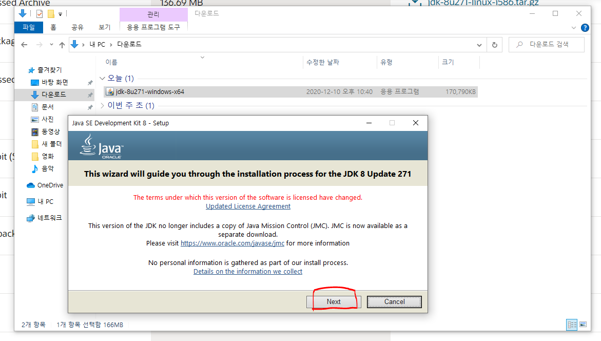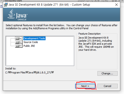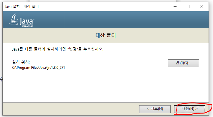 👉 JRE도 JDK랑 같은 위치에 설치! 쨋든 다음!