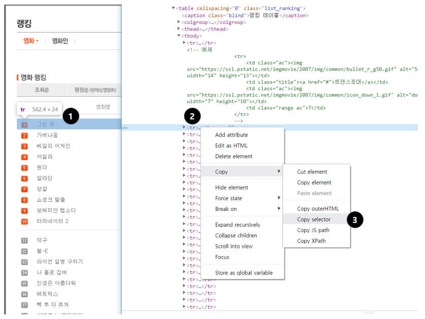 - 크롤링하고 싶은 부분의 선택자 가져오기
