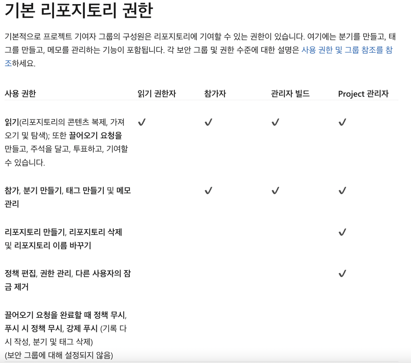 이미지 처럼 권한이 깃을 만든사람에 정책, 권한관리 등의 권한이 있어서 이렇게 결정하게 되었다.